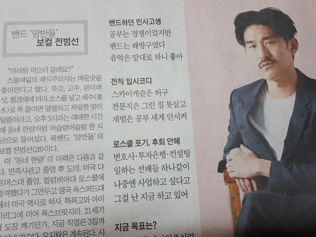 전범선 나이 학력 집안 스펙 대학 양반들 밴드 코디 풀무질 인스타